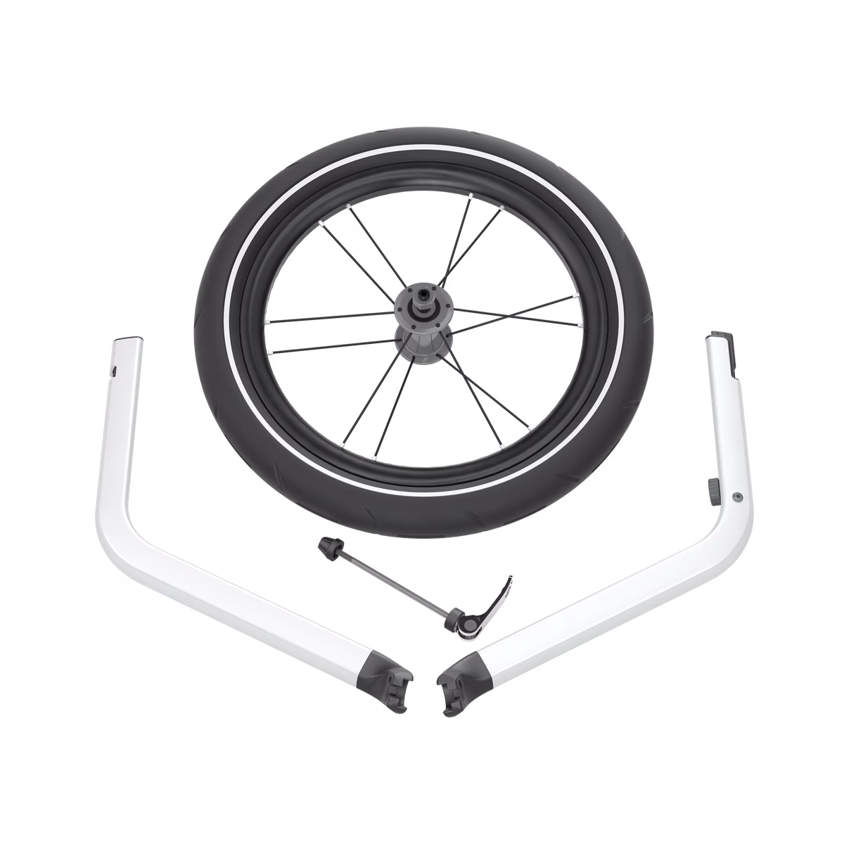 Envie d'une promenade sur chemins caillouteux ? Thule Chariot Lite 2 est compatible avec le kit course à pied Thule roue Jogging (à louer en supplément) qui la transformera en poussette tout-terrain exceptionnelle.